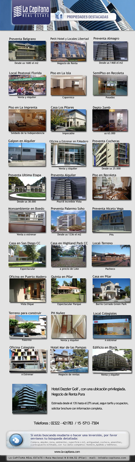 Inmobiliaria en Buenos Aires Alquiler y venta de oficinas Apartments to Rent, Apartments for Sale, Buildings for sale, Hotels for Sale.
